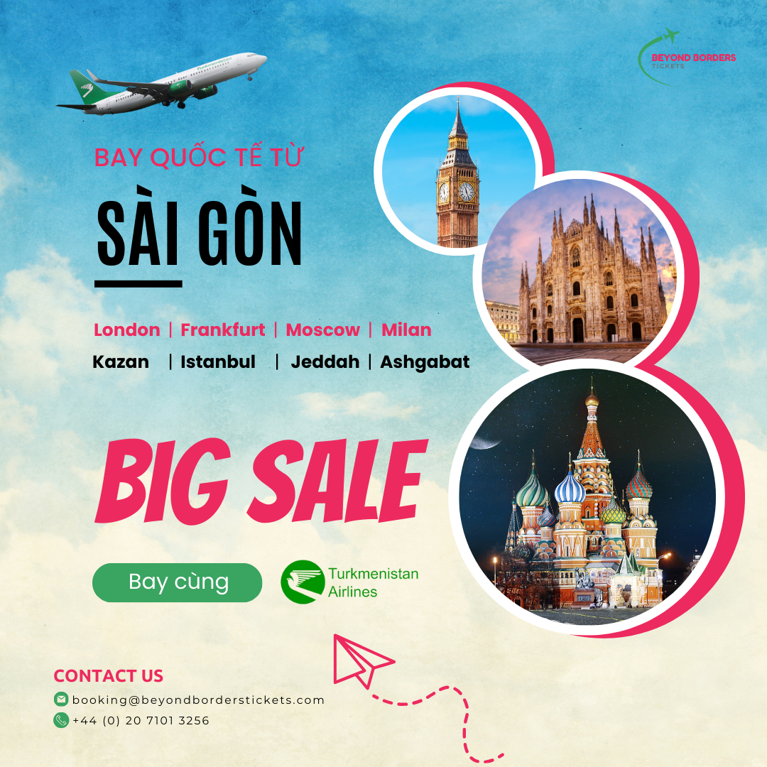 Thời gian hành trình SGN-LGW: 17 giờ 40 phút, bao gồm 2 giờ nối chuyến tại Sân bay Quốc tế Ashgabat, Turkmenistan